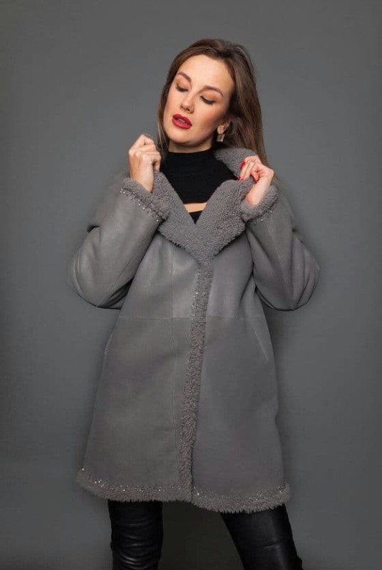 Роскошная и теплая двухсторонняя дубленка серого цвета