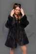 Стильная шуба из меха норки с капюшоном в современном цвете графит.