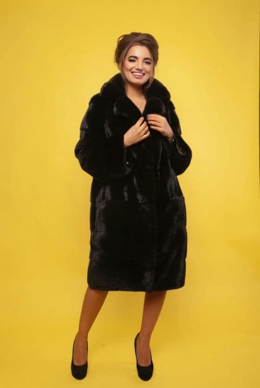 Модель - Норковое пальто в натуральном чёрном цвете